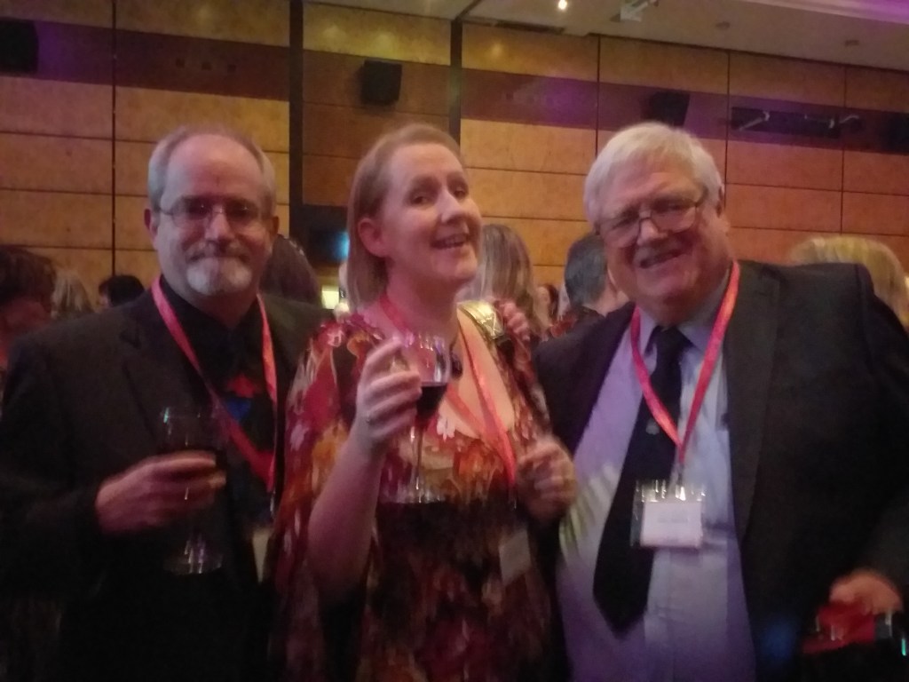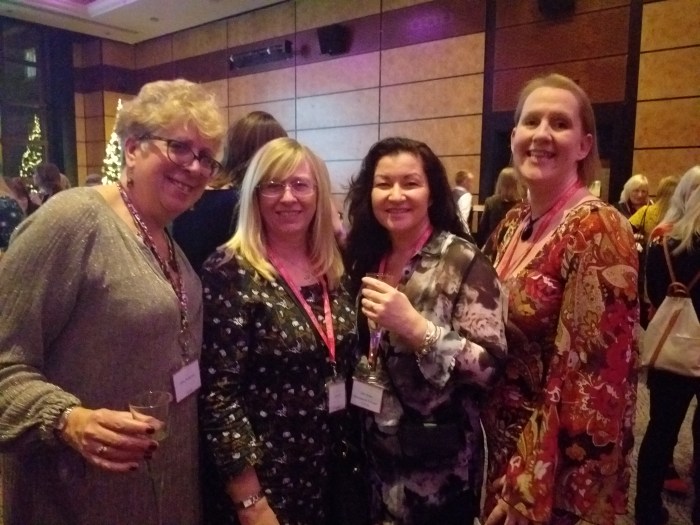 After a couple of drinks in the bar catching up with writer chums (particularly Rae Cowie, Sue Lovett, Sarah Shoesmith, Daisy James and Kate Smith) the assembled herd of RNA authors headed to the RNA Winter Party – which every year is combined with their Industry Awards. This is the RNA’s thank you to the publishers, agents and readers who support and cherish romance authors. I was particularly delighted to see Anne Williams (https://beinganne.com/ ) – a phenomenal book blogger and exceptionally lovely lady – win the Media Star Award, and Charlotte Ledger (@girl_on_a_ledge – editorial director of OneMoreChapter HC) win publisher of the year. (Slightly biased here as that’s my publisher and she has been enormously kind to me. You don’t forget these things.)
